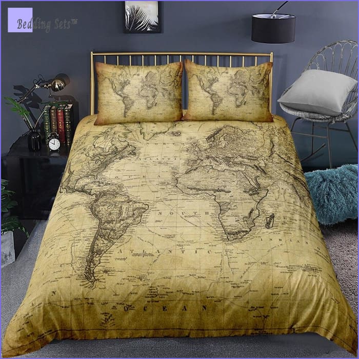 World Map Bedding, Free Spirit Map Duvet Cover Set, Inspirational