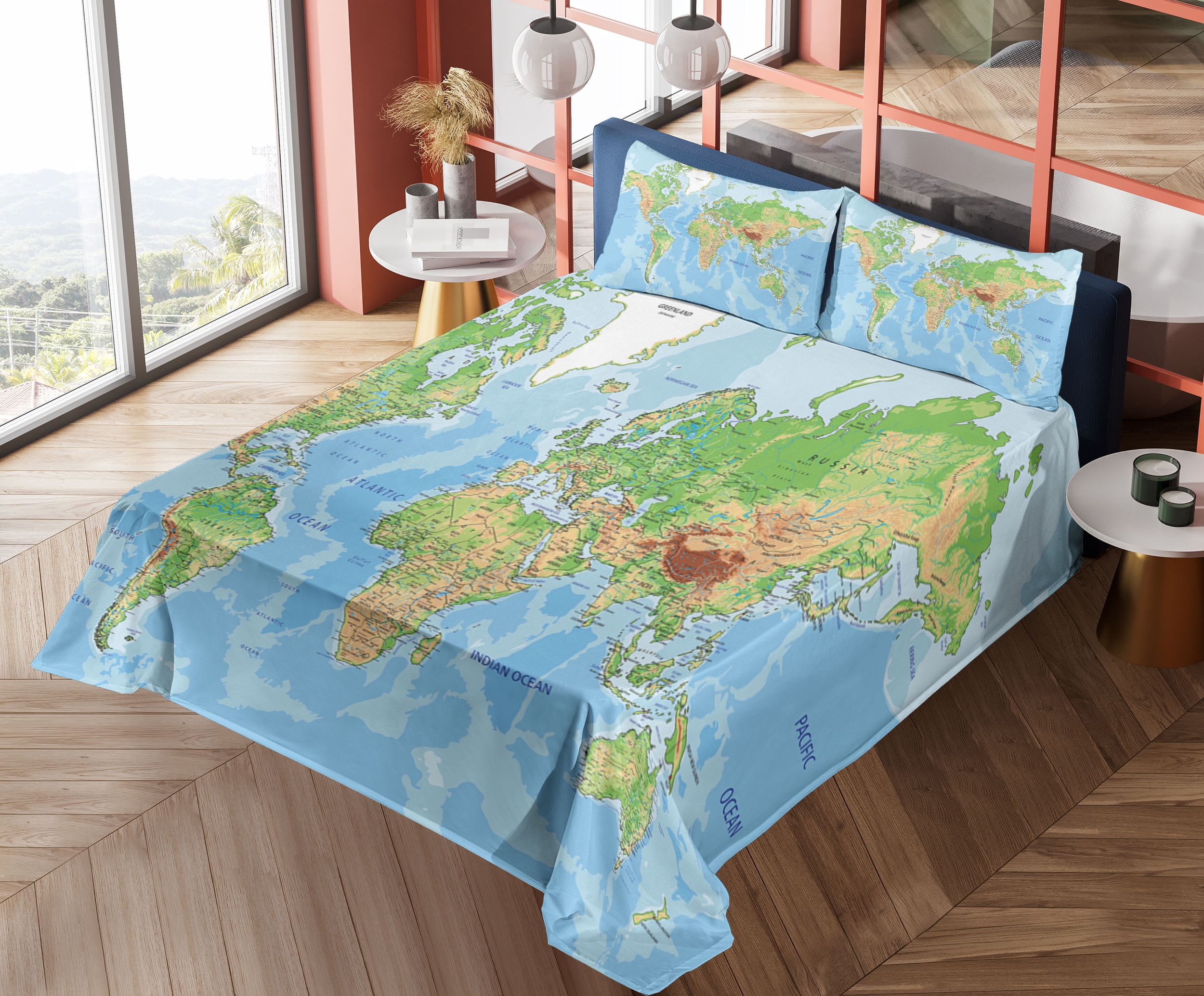 Amazon.com: World Map Fitted Sheet Colored World Map Bedding Set