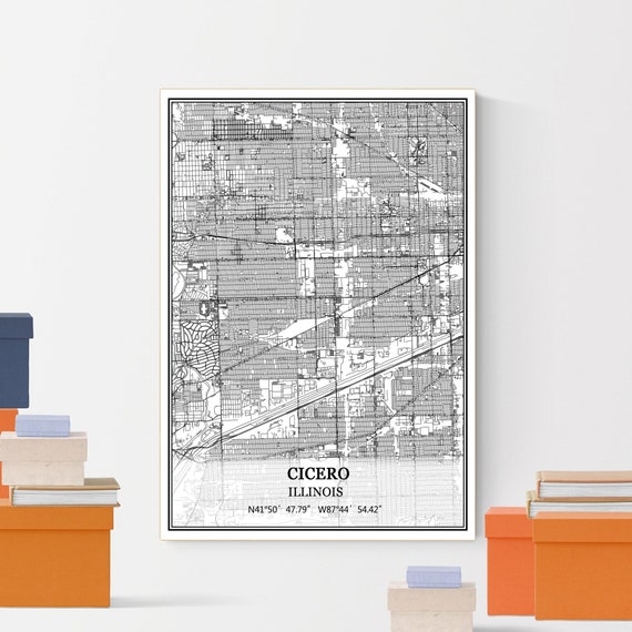 Cicero Illinois USA America Map Print Wall Art Canvas Poster