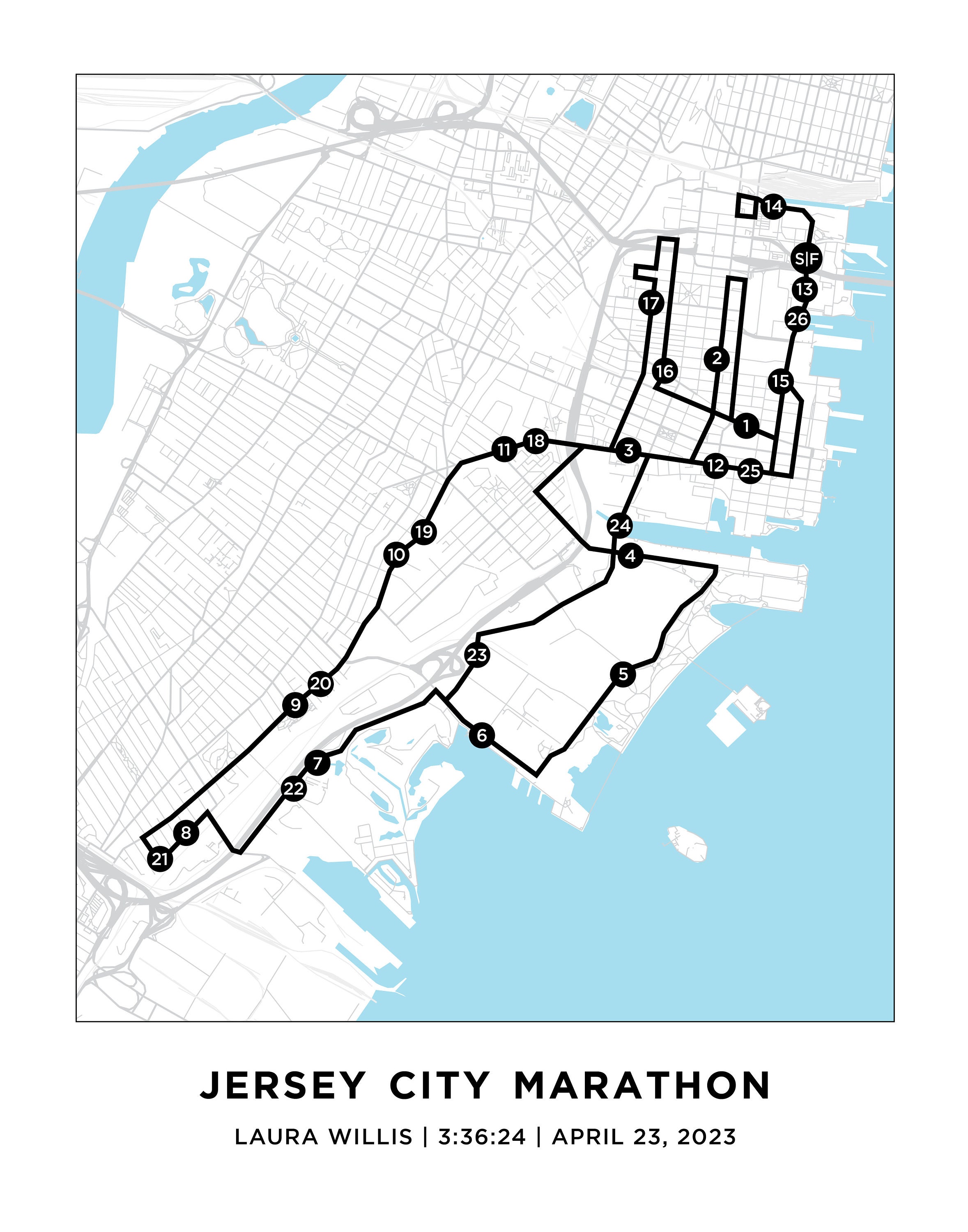 Jersey City Marathon Course Map Personalized Jersey City Marathon