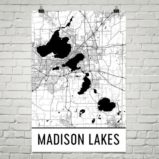 Madison Lakes WI Art and Maps โ Modern Map Art