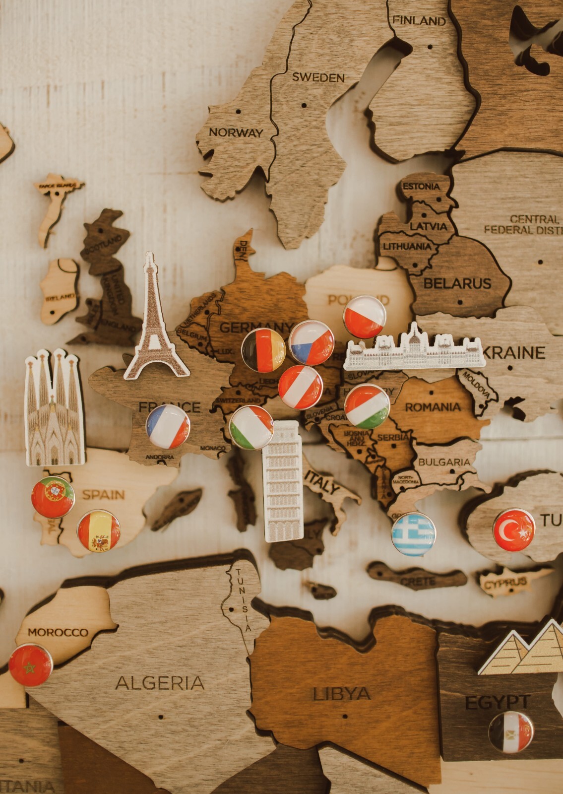 3D Wooden World Map with Push Pins